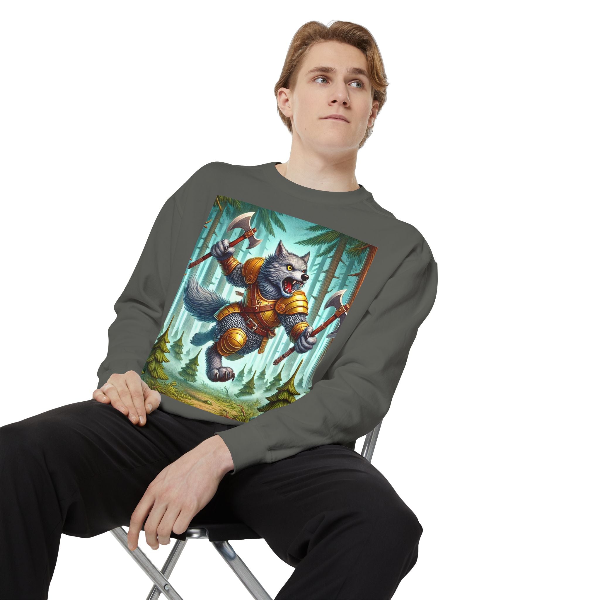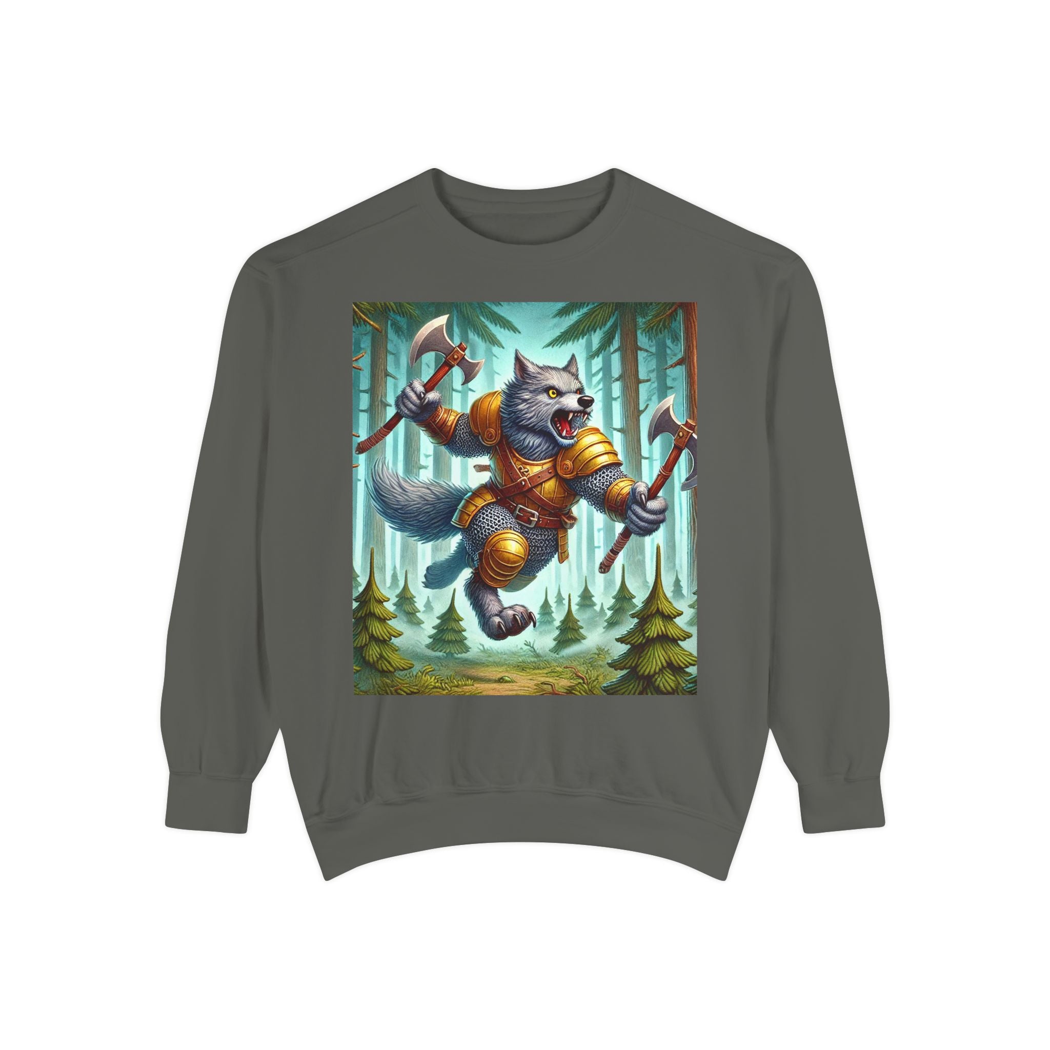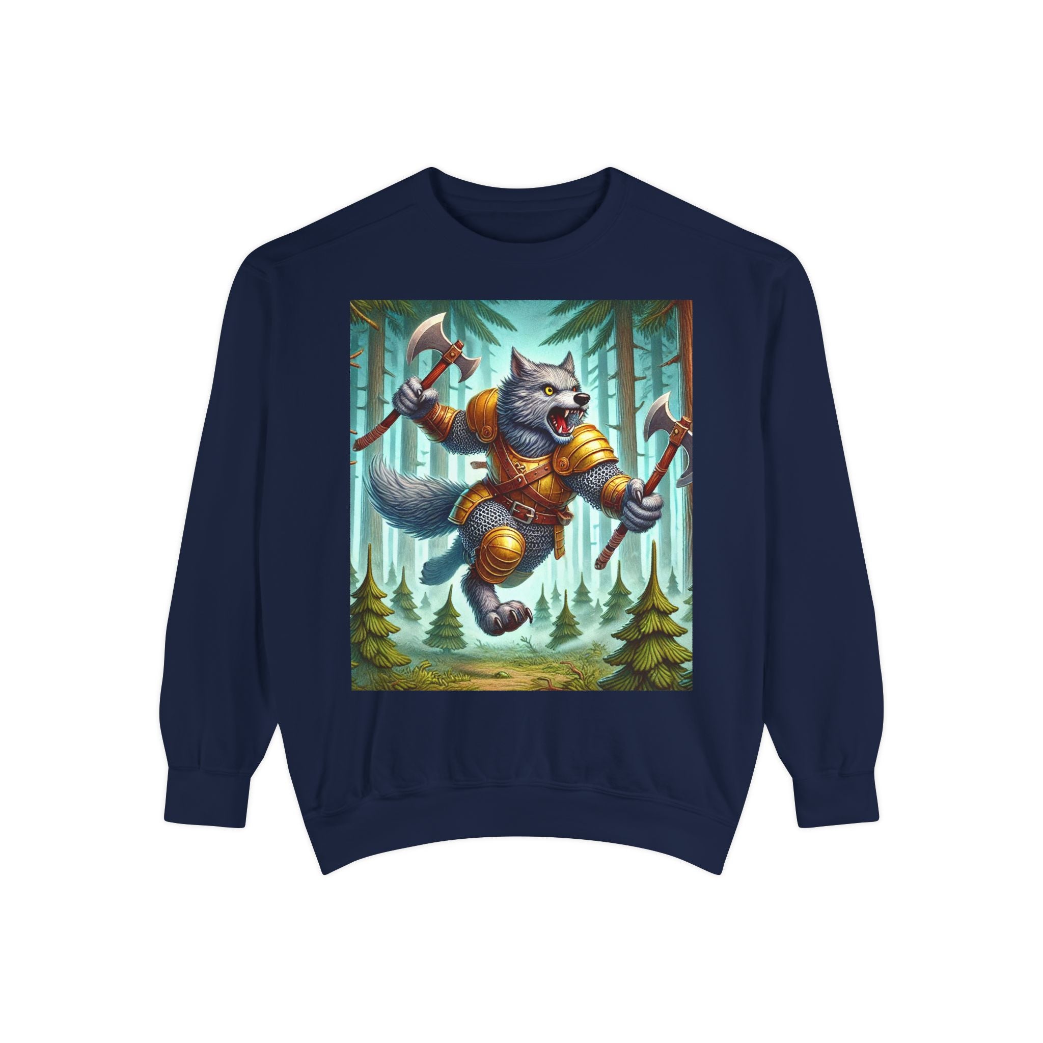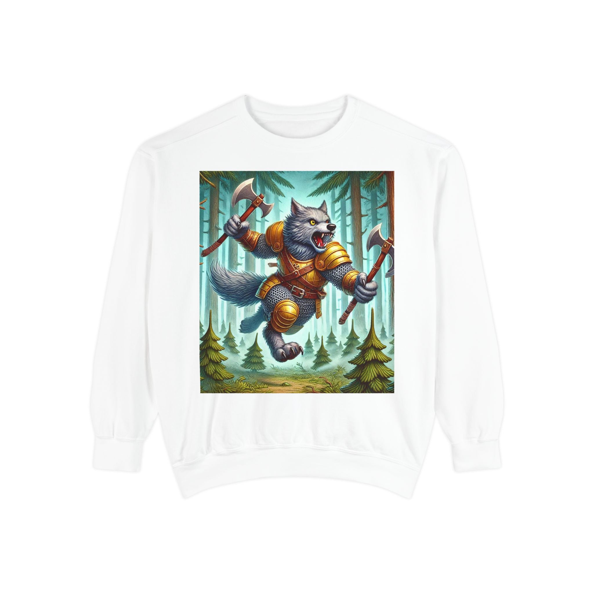This striking artwork features a wolverine vanguard charging fearlessly through a misty pine forest, clad in gleaming chainmail. With the stance of a seasoned warrior and the raw ferocity of nature’s most relentless predator, it tears through enemy lines amid swirling fog and towering evergreens. The composition captures primal energy and unbreakable resolve—a seamless fusion of fantasy, wilderness, and power that embodies strength in motion.