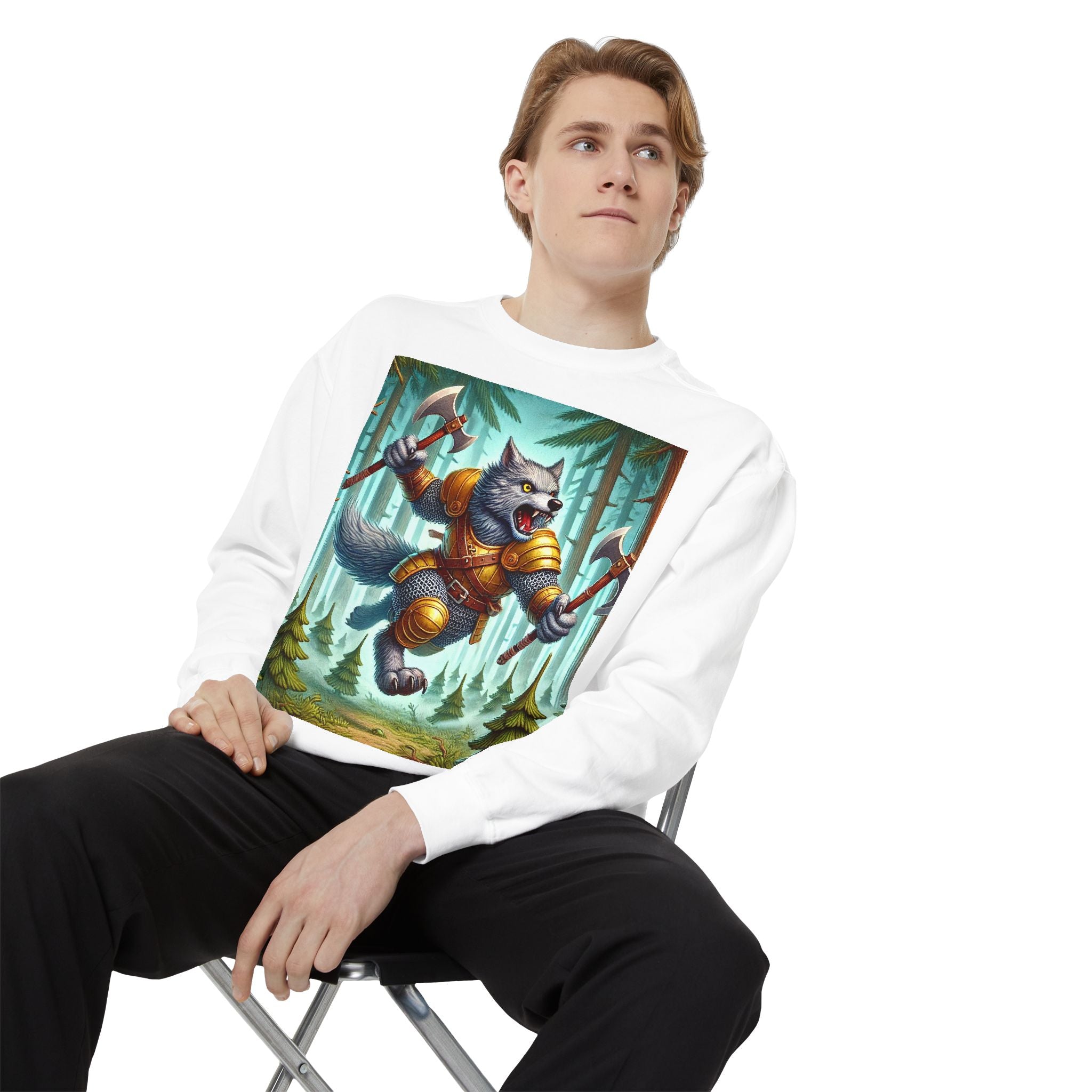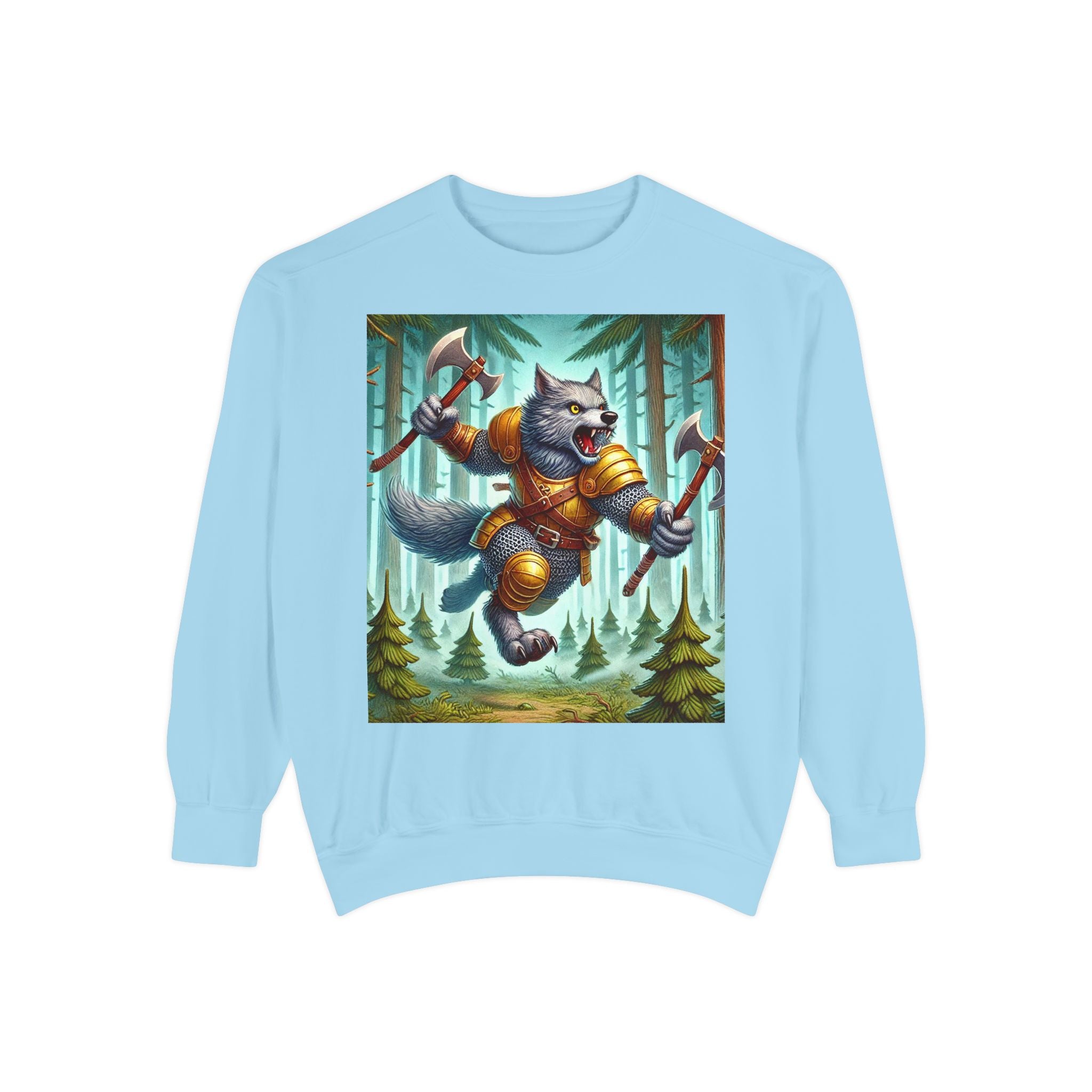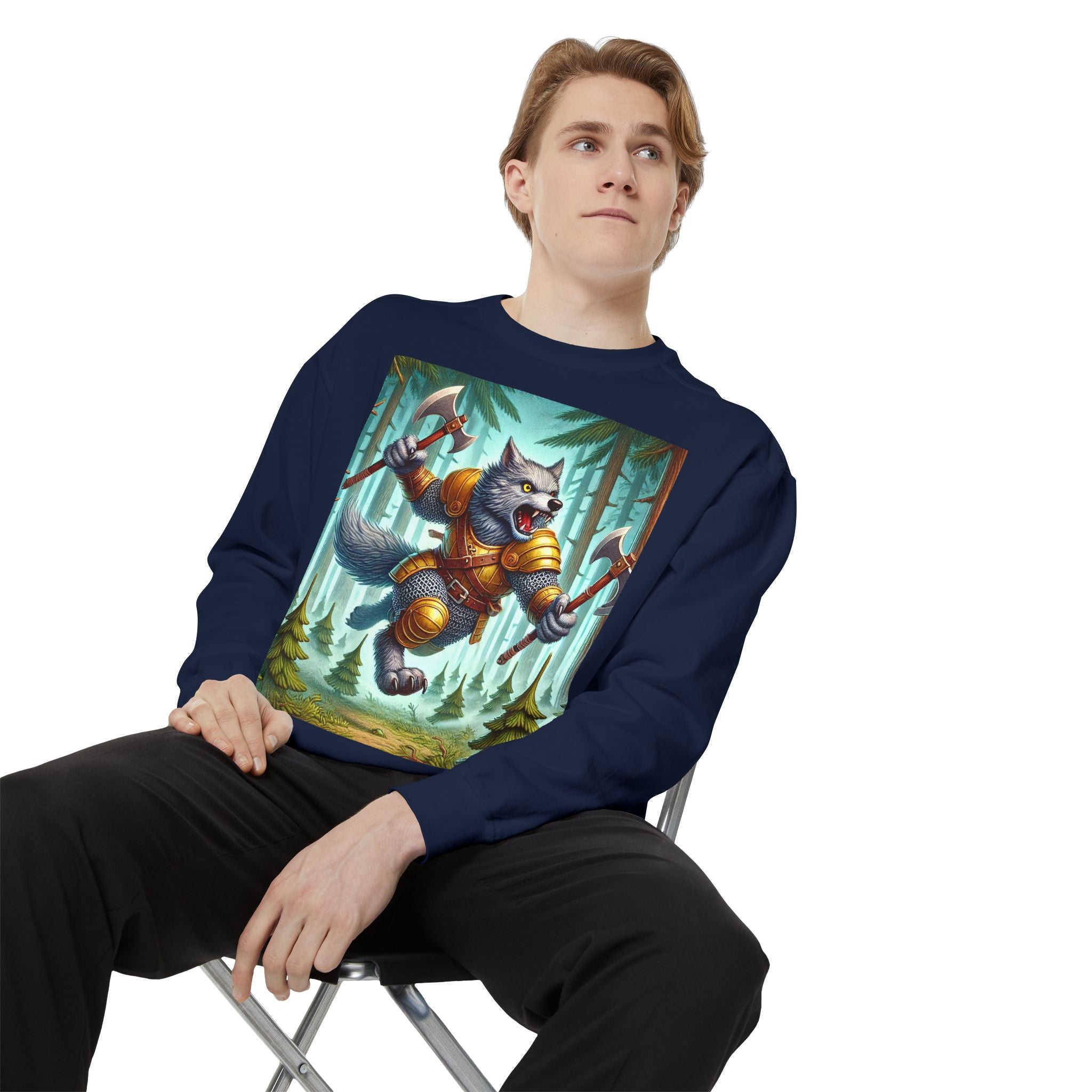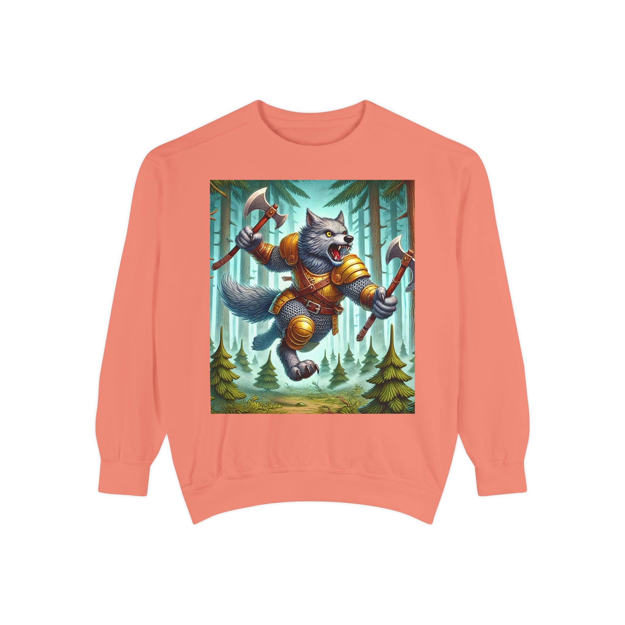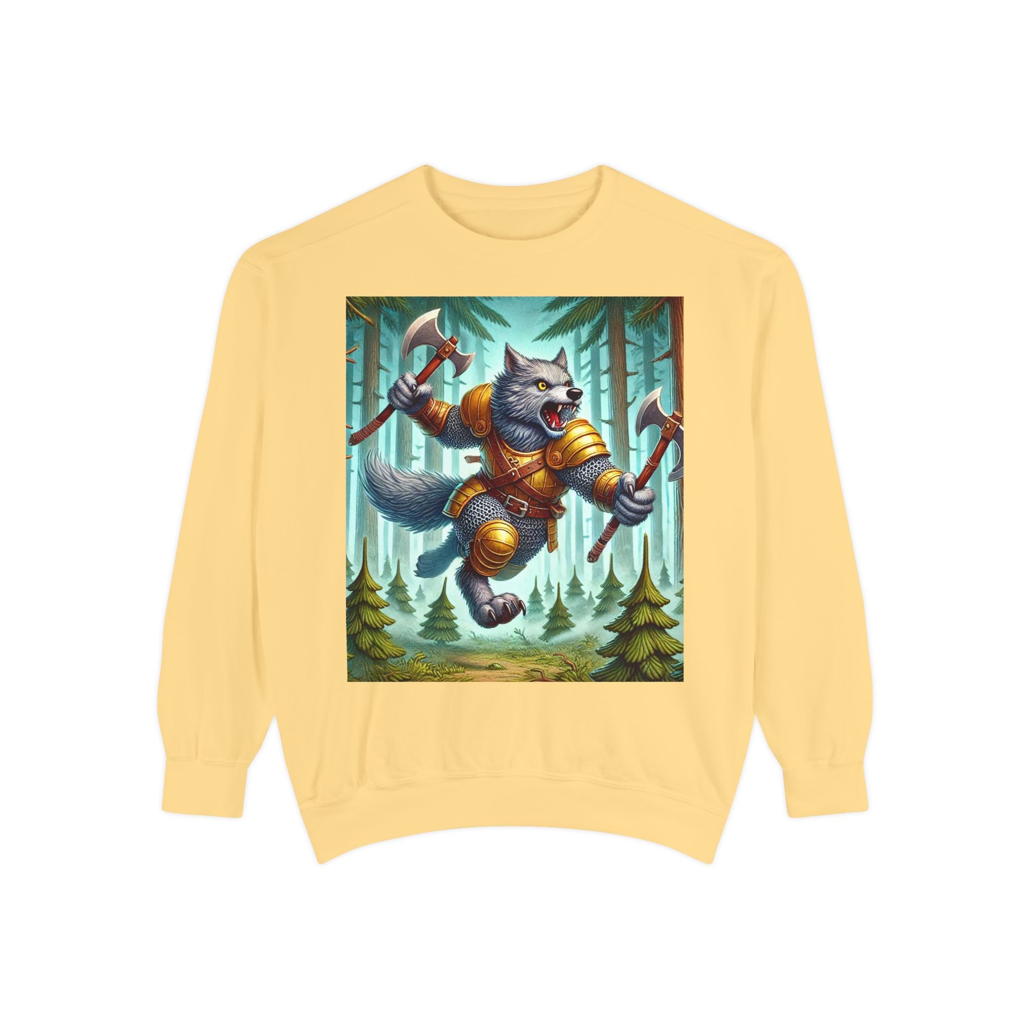 This striking artwork features a wolverine vanguard charging fearlessly through a misty pine forest, clad in gleaming chainmail. With the stance of a seasoned warrior and the raw ferocity of nature’s most relentless predator, it tears through enemy lines amid swirling fog and towering evergreens. The composition captures primal energy and unbreakable resolve—a seamless fusion of fantasy, wilderness, and power that embodies strength in motion.