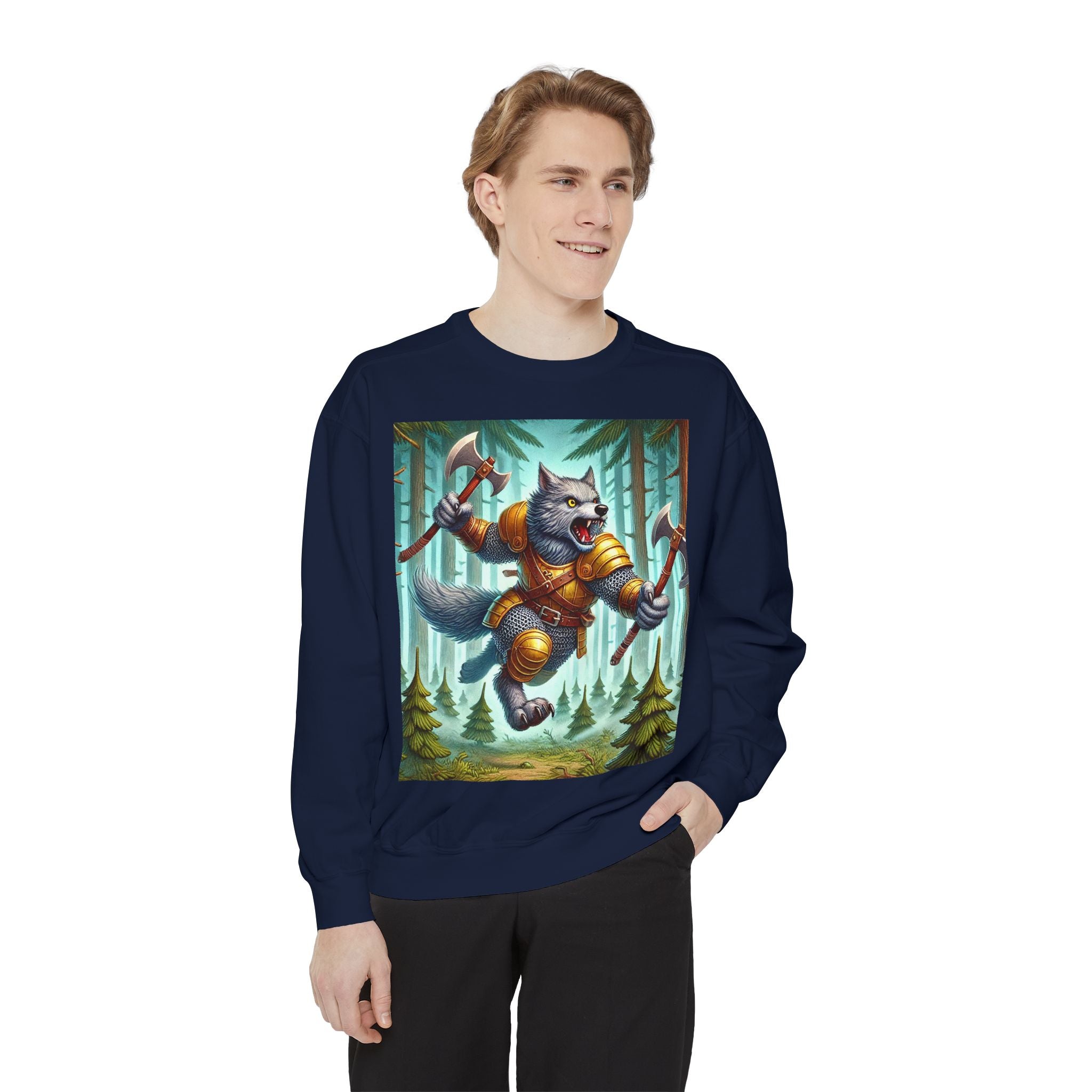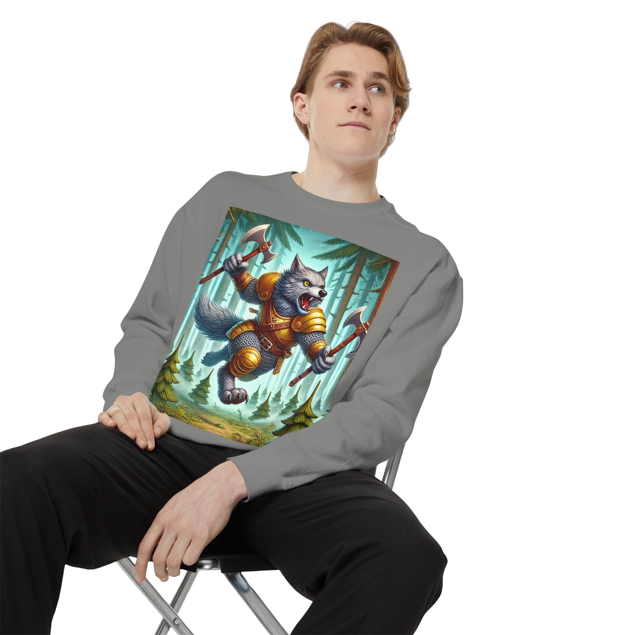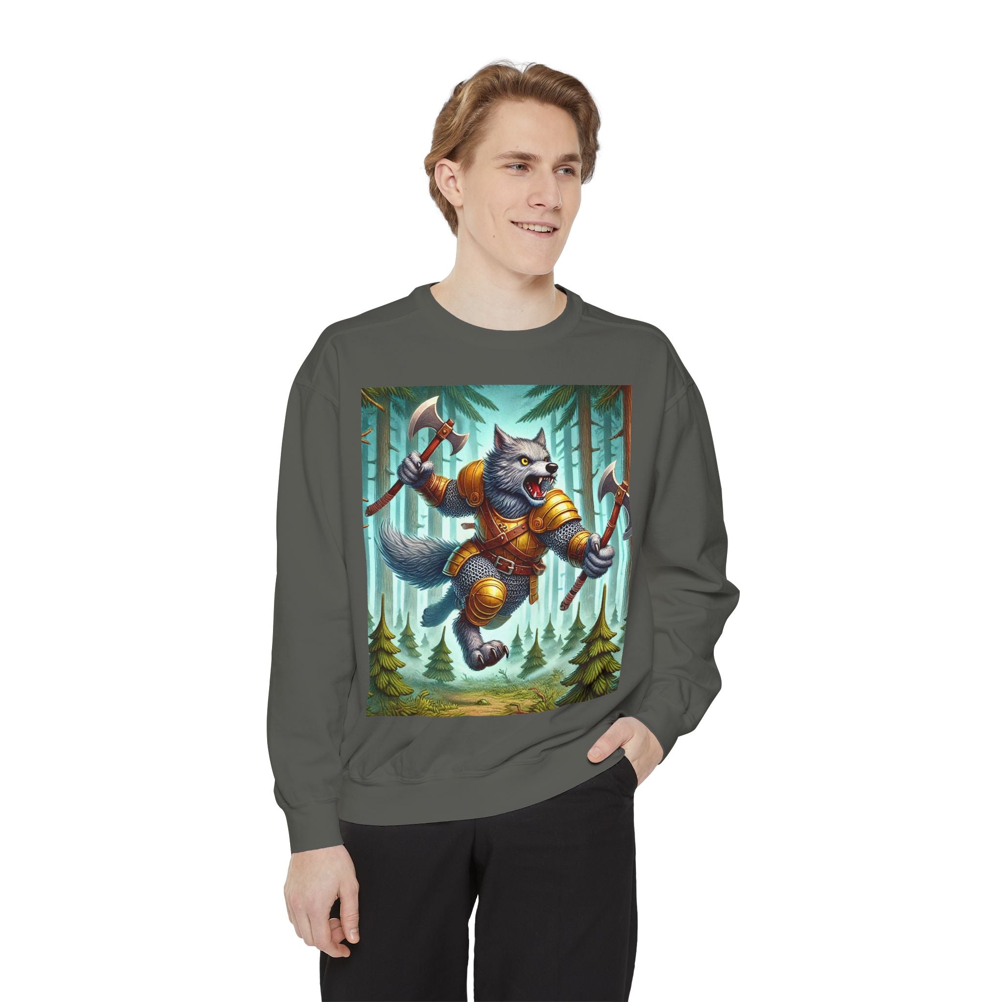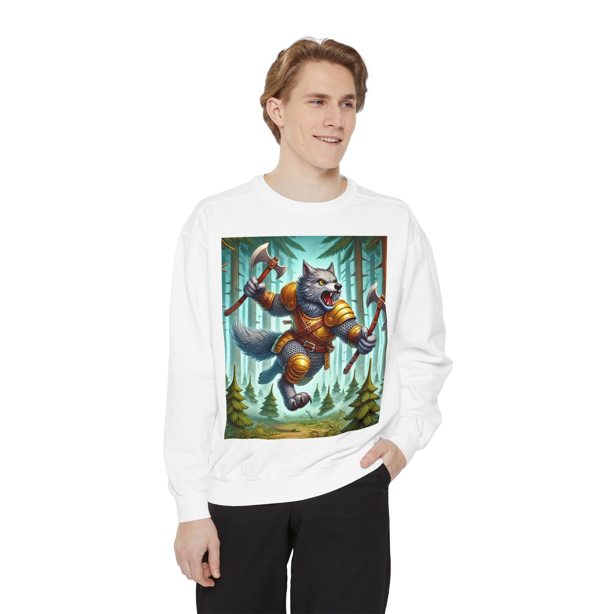This striking artwork features a wolverine vanguard charging fearlessly through a misty pine forest, clad in gleaming chainmail. With the stance of a seasoned warrior and the raw ferocity of nature’s most relentless predator, it tears through enemy lines amid swirling fog and towering evergreens. The composition captures primal energy and unbreakable resolve—a seamless fusion of fantasy, wilderness, and power that embodies strength in motion.