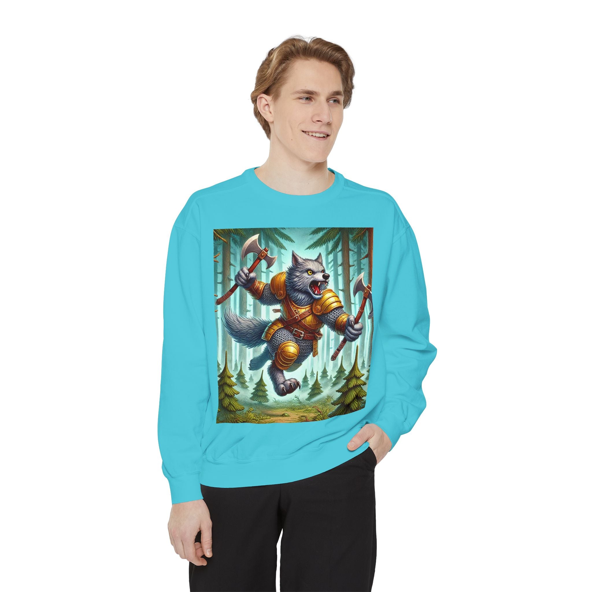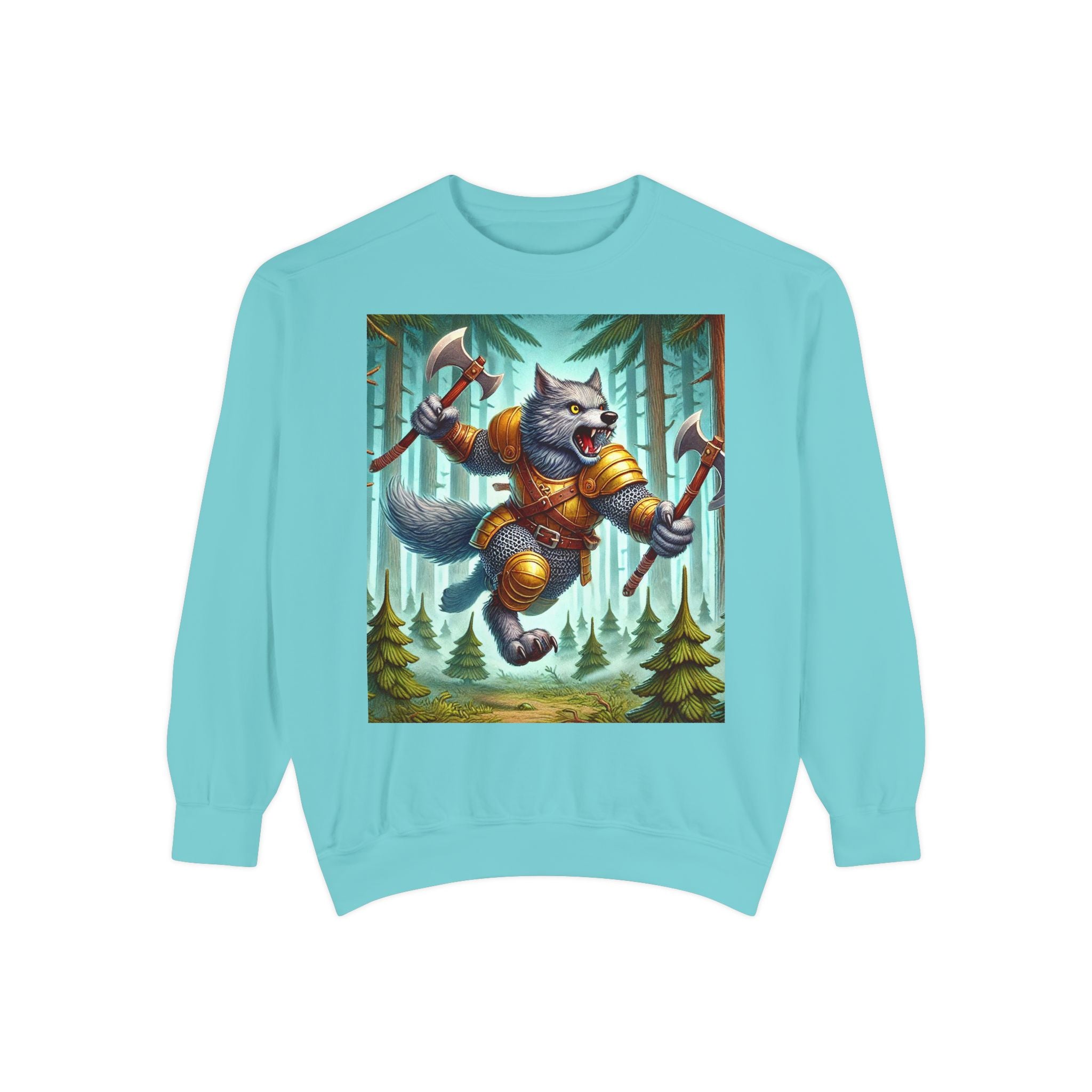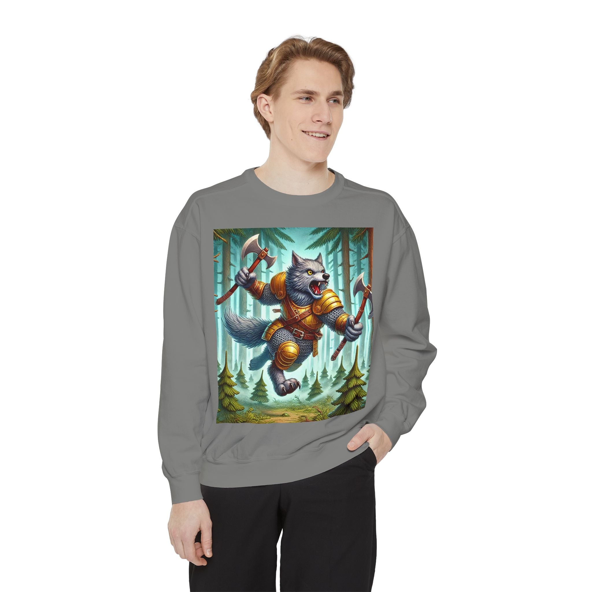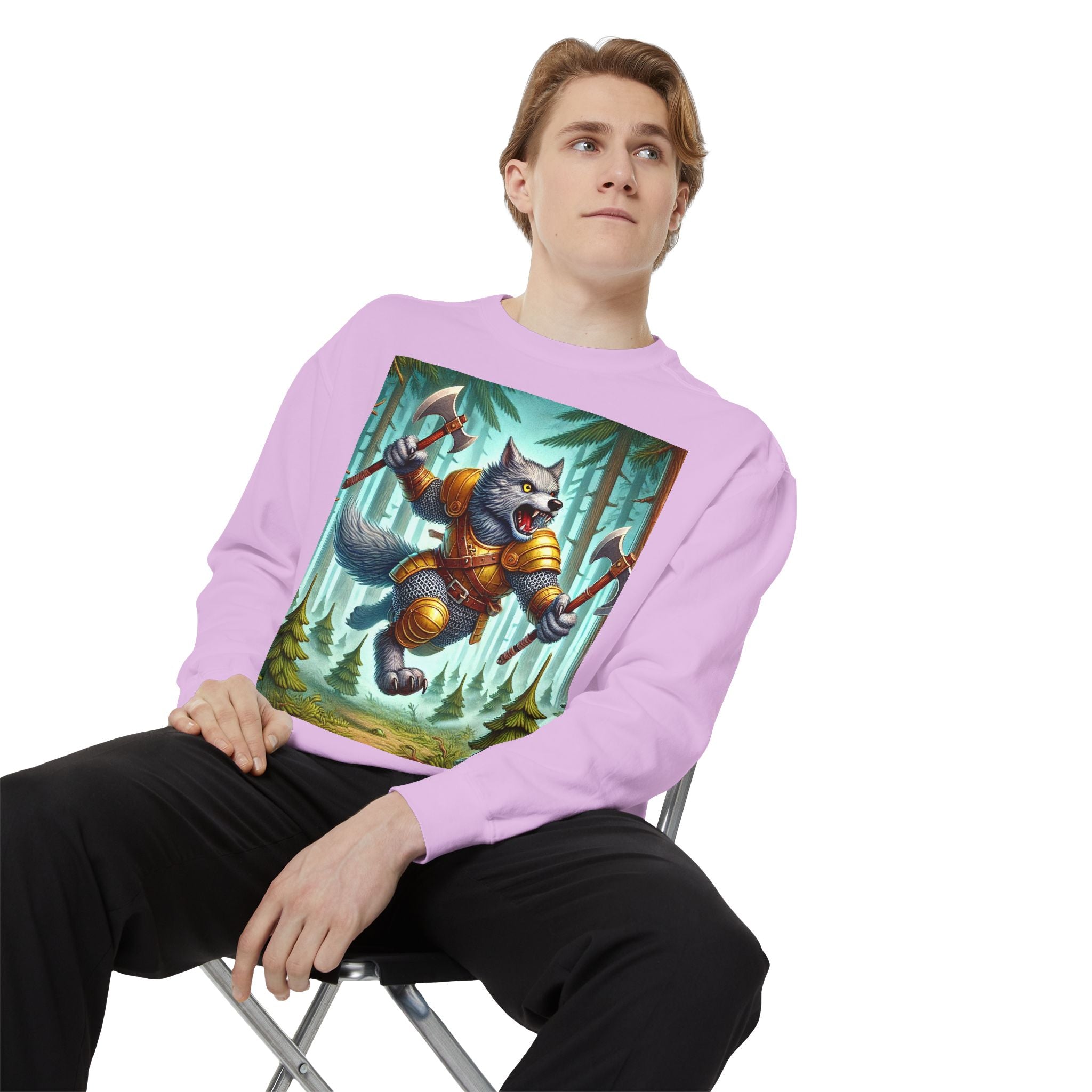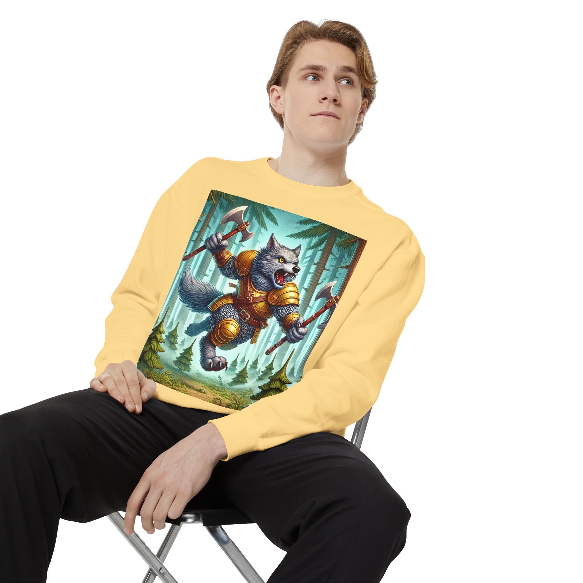 This striking artwork features a wolverine vanguard charging fearlessly through a misty pine forest, clad in gleaming chainmail. With the stance of a seasoned warrior and the raw ferocity of nature’s most relentless predator, it tears through enemy lines amid swirling fog and towering evergreens. The composition captures primal energy and unbreakable resolve—a seamless fusion of fantasy, wilderness, and power that embodies strength in motion.