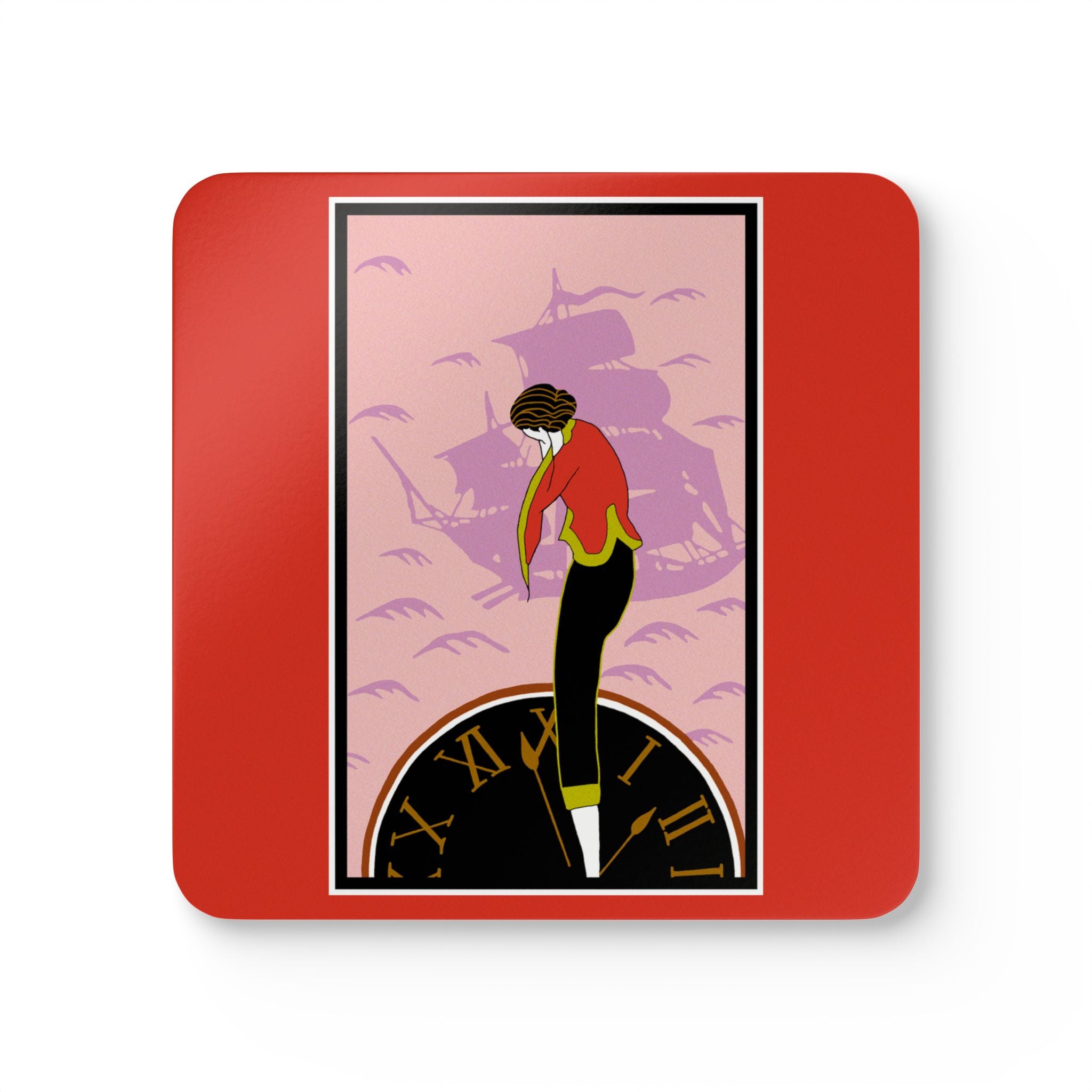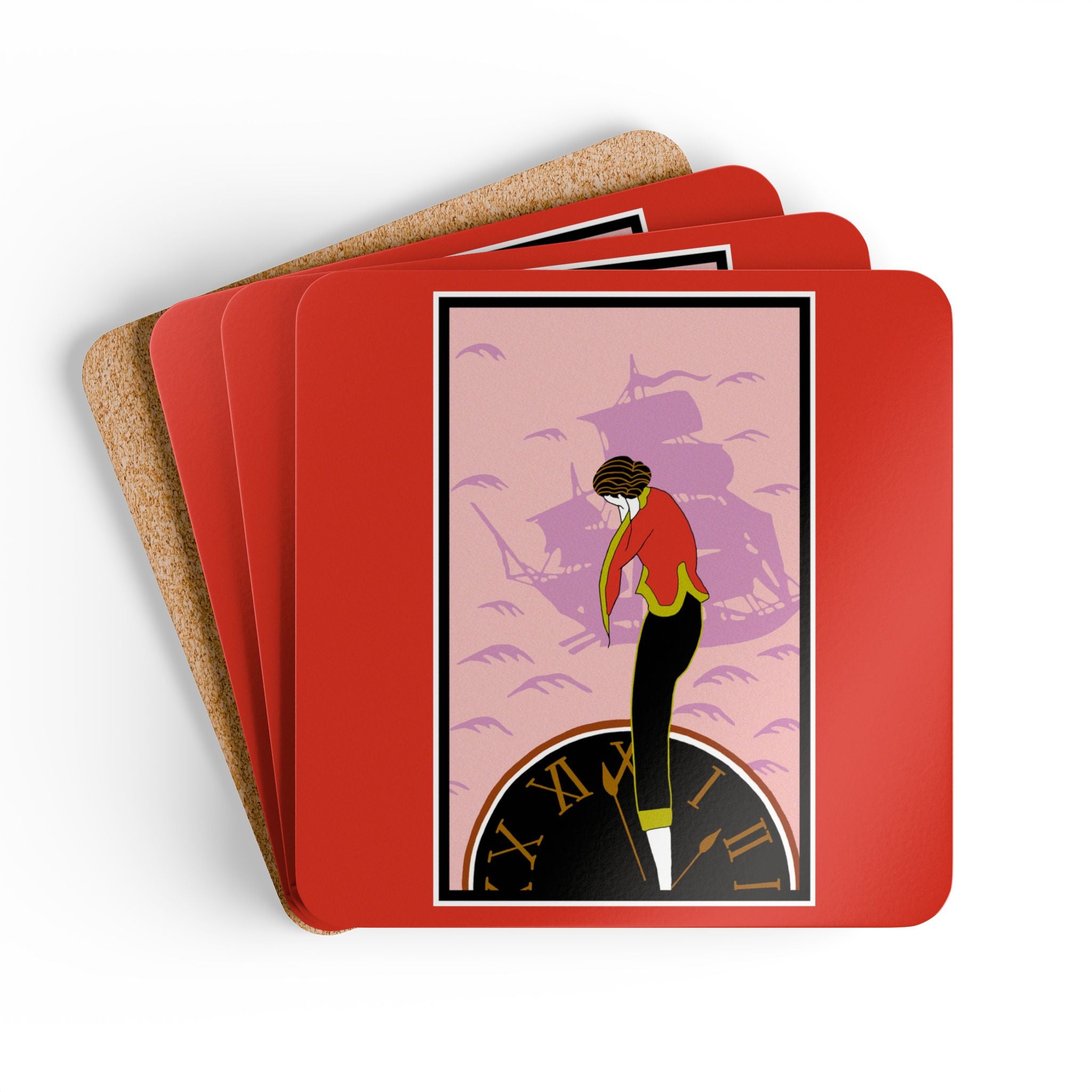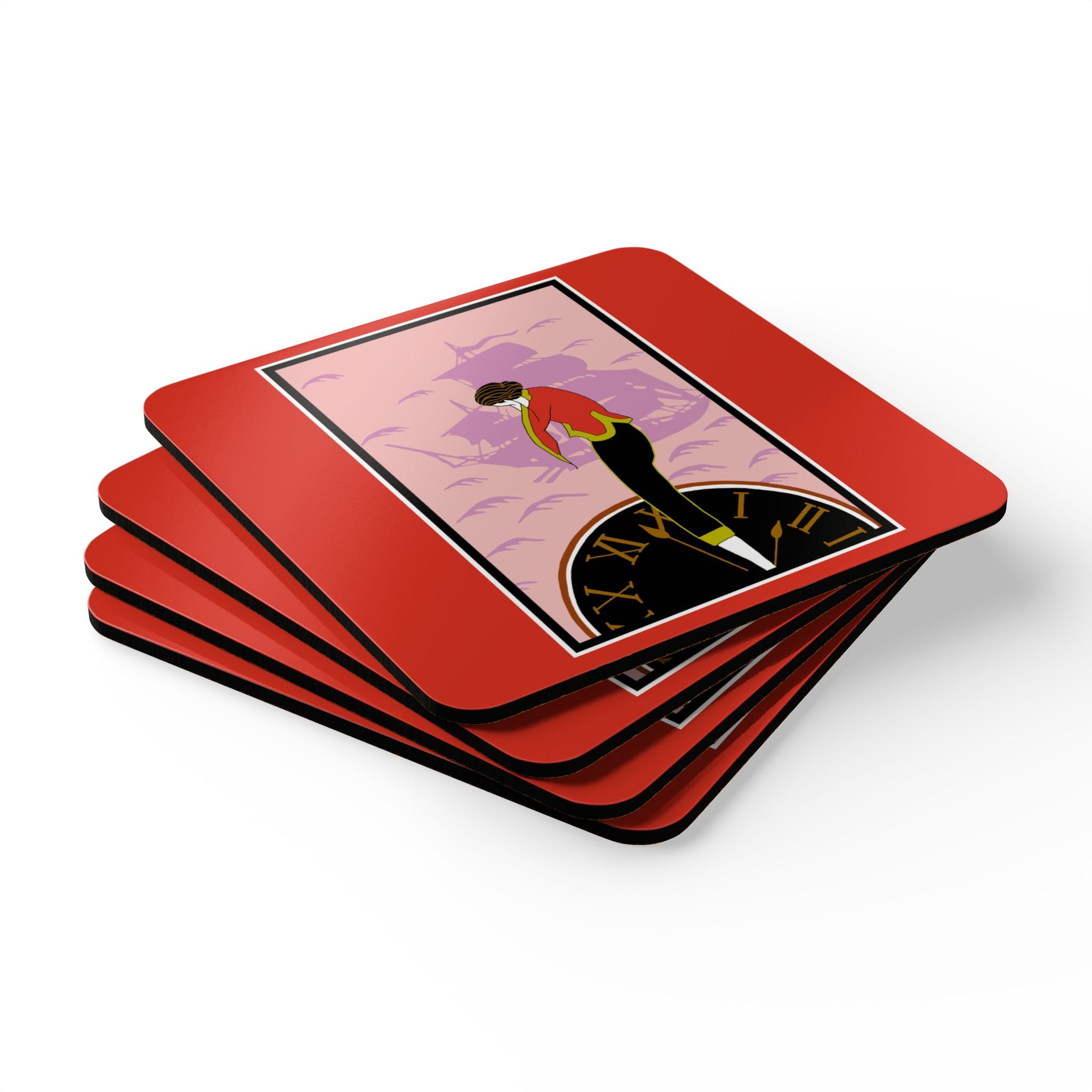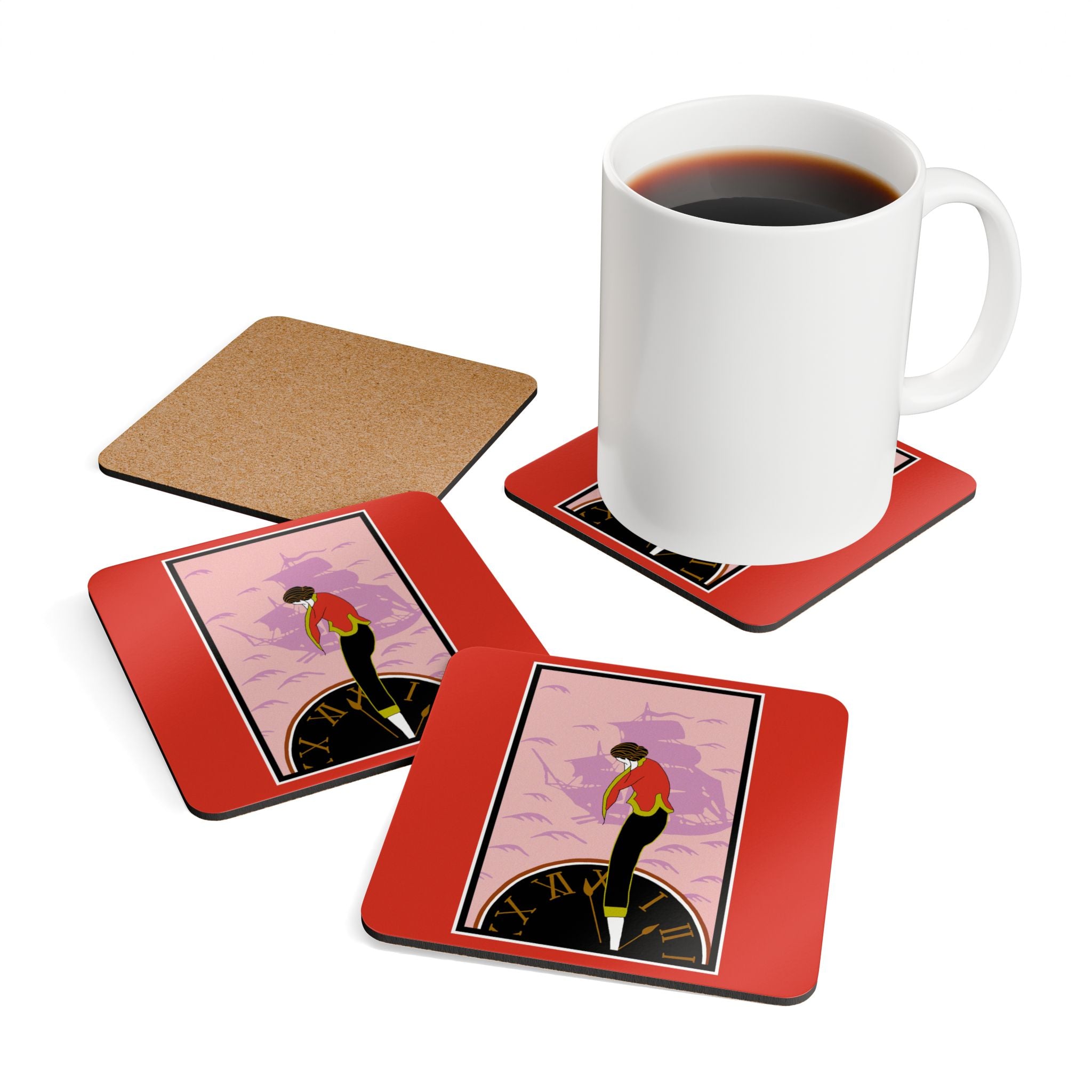 Woman Waiting for Her Beloved at 1:59 | Corkwood Coaster Set captures the timeless beauty and introspective mood of early 20th-century Japanese art. This elegant four-piece set blends vintage sophistication with everyday practicality, perfect for adding a refined artistic accent to any space.